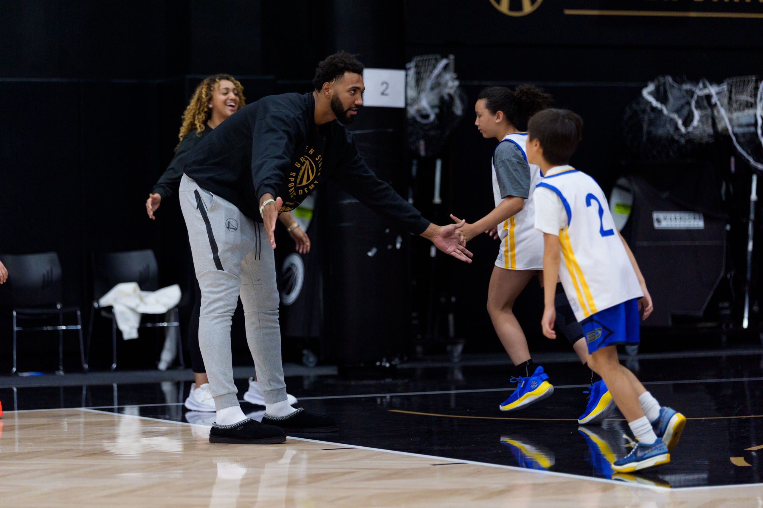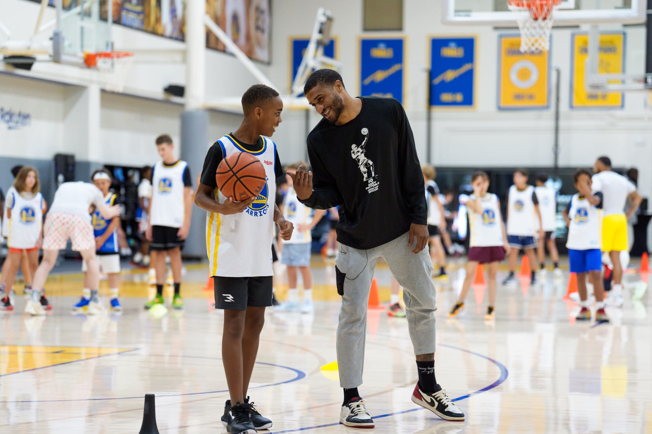 Over the summer, Warriors players Brandin Podziemski, Trayce Jackson-Davis, and Gui Santos joined campers from across the Bay at the Golden State Overnight Basketball Camps! Each 4-day stay included skills stations, shooting competitions, live games, and photo & autograph sessions with the players. The camp finished with swag giveaways and an awards ceremony attended by parents.